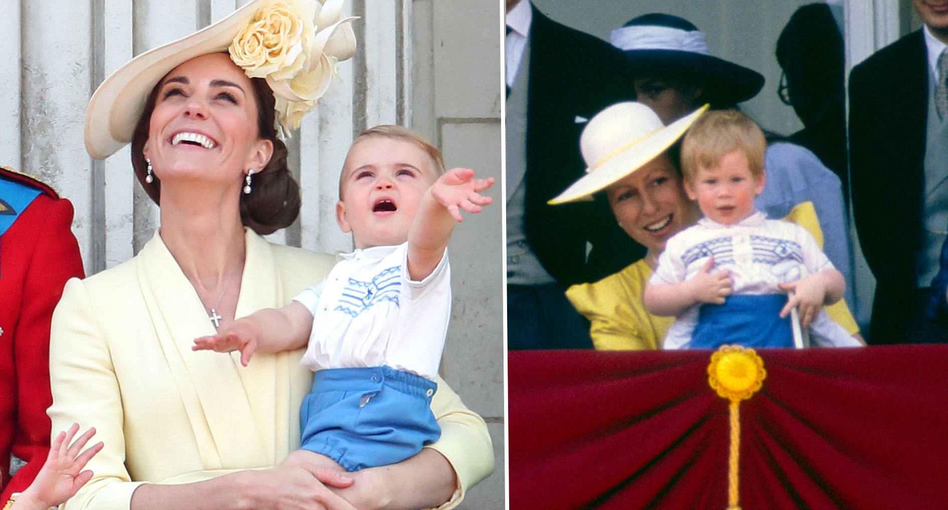 Päť členná rodina Cambridge sa zúčastnili Trooping the Colour, ktoré sa konalo 08. júna v Londýne. Trooping the Colour je každoročné zvýraznenie letného kalendára - sľub ohromujúcim vystúpením v Londýne (x). Aj keď sú narodeniny kráľovnej, 21. apríla, je už dlho tradícia, že sa jej narodeniny oslavujú v júni, kedy je dobre počasie,. Jej veličenstvo sa každoročne zúčastňuje Trooping the Colour od roku 1947 (x), s výnimkou v roku 1955, keď bolo podujatie zrušené kvôli národnému železničnému štrajku. Trooping the Colour skutočne vzniklo ako tradičné prípravy na boj. Farby alebo vlajky, boli vonku, aby ich mohli vojaci vidieť. V roku 1748 bolo oznámené, že prehliadka bude znamenať aj oficiálne narodeniny panovníka. Prehliadka na kočoch siaha od Buckinghamského paláca pozdĺž Mall do Horse Guards Parade, Whitehall a zase späť. Kate sedela v kočiari s vojvodkyňou z Cornwallu a s vojvodom a vojvodkyňou zo Sussexu (x). V druhom koči bol princ Andrew, princezná Beatrice, princezná Eugenie a Jack Brooksbank (x). V tretom sme videli rodinu princa Edwarda, grófku z Wessexu, Lady Louise Windsor a James, Viscount Severn (x). A v poslednom koči sme mohli vidieť kráľovnú (x). Počas ceremónie, kráľovná je pozdravená Royal salute a dohliada na kontrolu vojakov (x). Viac ako 1400 dôstojníkov a vojenského personálu je na prehliadke, spolu s dvesto koňmi, viac ako 400 muzikantov z desiatich kapiel a zbor bubnov pochodujúc a hrajú ako jeden. Na koni boli princ Charles, ako plukovník waleských stráži; princ William, ako plukovník írskych stráži; princezná Anne, ako plukovník Blues and Royals; a princ Andrew (x). Harry nejazdí na koni, pretože nie je kráľovským plukovníkom a do minulého roka nebol ani princ Andrew, keď nahradil svojho otca ako plukovník Grenadier Guards. Z okna to sledovali aj tri maličké detičky, princ George, princezná Charlotte a princ Louis (x). Potom sa rodinná zhromaždila na balkóne Buckinghamského paláca o 13:00. Vtedy toto podujatie vrcholí lebo nastáva Royal Air Force (x). Viac ako 25 vojenských lietadiel stúpa nad Buckinghamský palác vo formáciách tridsať sekúnd od seba. Akrobatický tím, Red Arrows, zdobia panoráma červeným bielym a modrým dymom (x). Bolo to prvé oficiálne vystúpenie princa Louisa a aj jej ho prvé vystúpenie na Trooping the Colour. Louis prišiel na rúčkach Kate ale počas preletov sa vypýtal na rúčky svojho tatka princa Williama. Ako som pozerala už aj malý princík zvláda perfektné kráľovské kývanie, ktoré asi od sledoval od jeho šikovnej sestričky Charlotte. Podľa všetkého Georgovi sa tam veľmi nechcelo byť a vyzeral jemne znudené no Charlotte si to tam užívala. Kráľovná mala na sebe tvídové šaty Angela Kelly v bledoružovej, zelenej a žltej farbe. Ku tomu zvolila rovnaký klobúk od Angela Kelly. A brošňu, ktorú mala pripnutú je Guards' Brooch a nosí ju už 20 rokov (x). Vojvodkyňa z Cornwallu nosí kabát Bruce Oldfield v zelenej farbe s bielou výšivkou (x) a mala ho už na sebe pri záhradnej slávnosti oslavujúcej princa z Walesu 70. narodenín pár dni po svadbe Harryho a Meghan. Vojvodkyňa zo Sussexu mala na sebe šaty od Clare Waight Keller z Givenchy s klobúkom od Noel Stewart (x). Princezná Eugenie mala na sebe šaty Amanda Wakeley s klobúkom Emily London. Lady Lousie mala na sebe tmavomodré šaty, ktoré mala na sebe počas svadby princeznej Eugenie. Sophie je v šatách Suzannah a klobúk Jane Taylor (x). Kate mala na sebe citrónové na mieru ušite šaty Alexander McQueen (x). Šaty mali v-čkový výstrih, s dvojitým pretiahnutým golierom, jemne nadýchnutými rukávmi a tri štvrťovými rukávmi. Sukňa bola obtiahnutá, pás bol jemne stiahnutým po stranách boli volániky. Ku tomu zvolila žltý klobúk od Philip Treacy (x), ktorý mala na svadbe princa Harryho a Meghan Markle v máji 2018 (x). Má kvetinový vzor z kolekcie na jar a leto 2018. Ku tomu zvolila náušnice zapožičané od kráľovnej Bahrain s perlami (x). Kate ich mala na pár udalostiach, vrátane Royal Ascot v roku 2017 (x). V roku 1947, dostala princezná Elizabeth sedem väčších perál od vládcu Bahrainu, a dve z perál boli použité na vytvorenie krásneho páru náušníc. Na krku mala zavesený strieborný krížik ozdobený diamantmi (x). Kabelka bola v striebornej farbe od Alexandra McQueena s názvom Butterfly Box (x). A celý look dotvorila výčesom na stranu (x). Princ Louis mal na sebe oblečenie (x), ktoré mal princ Harry počas Trooping the Colour v roku 1986 (x). Je časté, že deti Cambridge nosia rovnaké outfity ako kráľovské deti v minulosti. V roku 2015 malý princ George nosil rovnaký outfit ako jeho otec počas Trooping the Colour v roku 1984 (x). Ďalší rok mal princ George podobný outfit ako jeho otec počas krstín princa Harryho v roku 1984 (x). Princezná Charlotte mala na sebe kvetinové šaty s golierom Peter Pan (x). Šatôčky mali jemne nafúknuté rukáviky a modrým olemovaním. Vlásky mala podobné začesané ako na fotkách z Back to Nature Garden (x), takže predné vlásky spletené a zvadu zopnuté mašličkou. Je to väčšia zmena, keďže predtým vlásky nosila zopnuté dozadu (x). Princ George mal na podobnú košeľu ako minulý rok čo bola Daniel od Amaia Kids ale nie je isté či je to aj dnešný kúsok (x). Olemovanie bielej košele je vo svetlomodrej farbe a ma ich zakasané do tmavých nohavíc alebo kraťás.